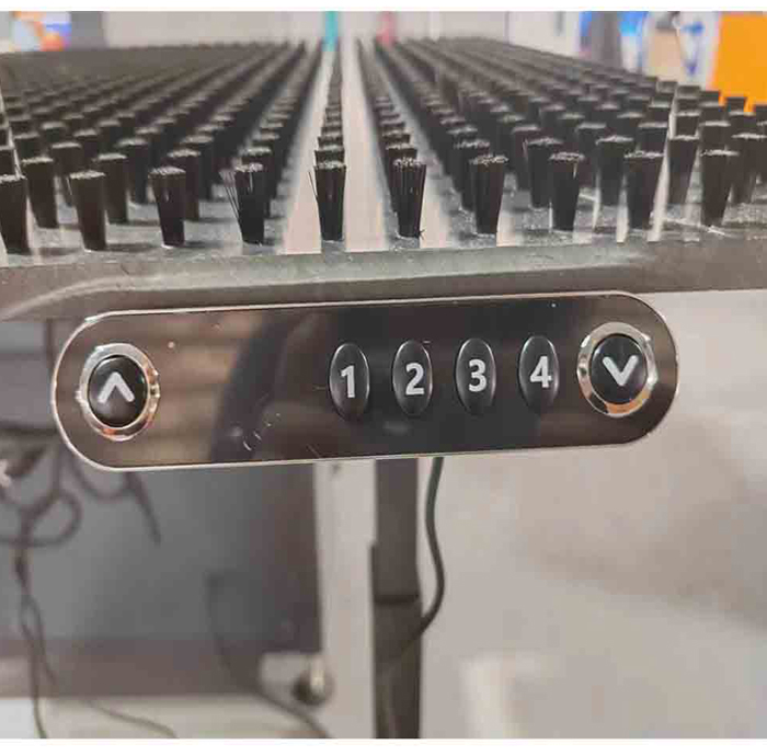 壓鉚機配套操作臺,適合大尺寸板材的壓鉚工作。升降臺升降高度69-115cm,臺面尺寸:長1200mm,寬700mm。4個高度可記憶設置。操作便捷,節省人工。臺面表面均勻分布高密度毛刷,避免板材表面移動過程中造成刮痕。